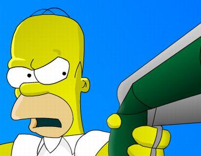 Popis: Homer v guli, ktorý chytá donutky, pivo, koktejl a ostatné veci vo vyšších levoloch